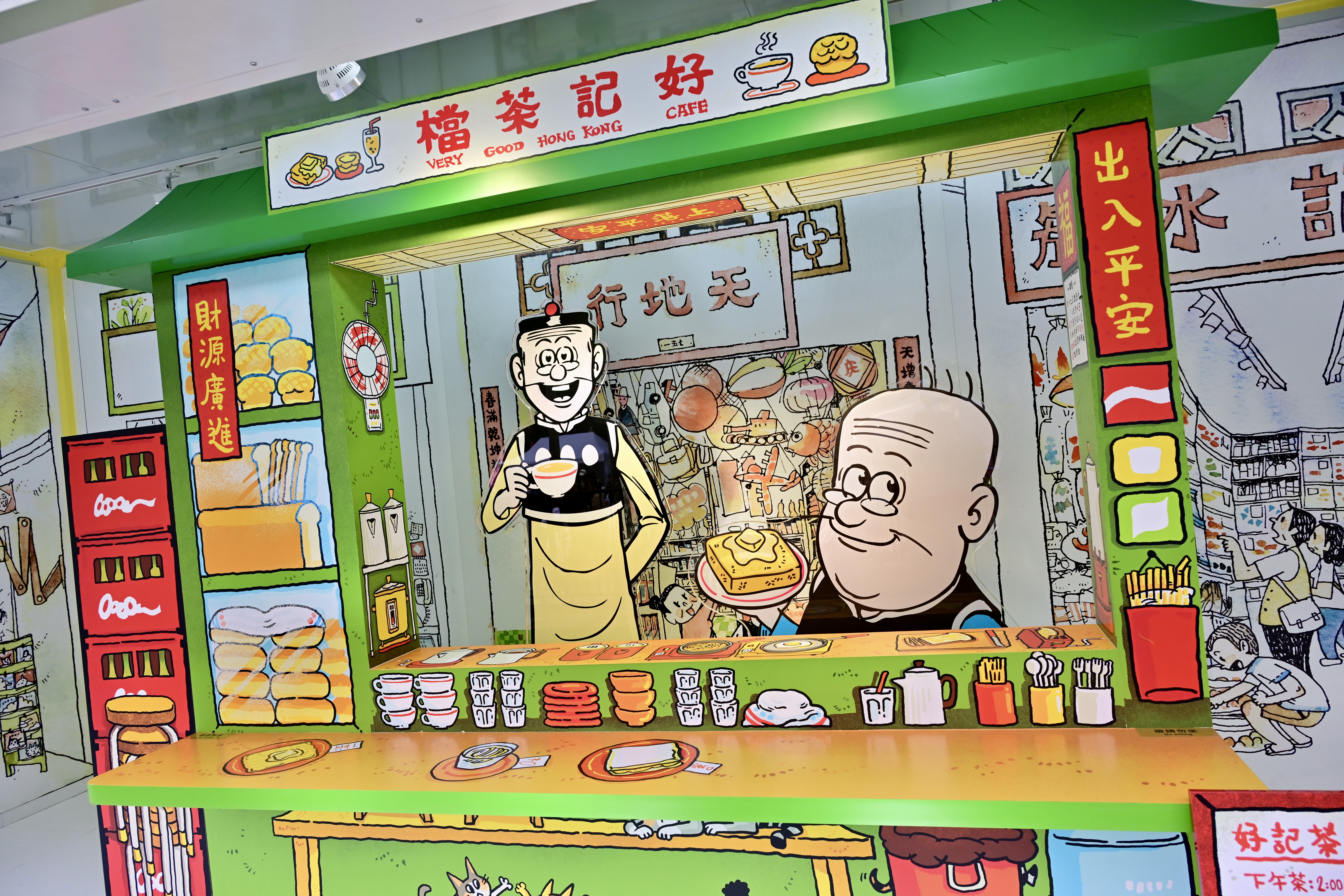 A “milk tea stall” where visitors can take photos with classic characters like Old Master Q and the Big Potato.